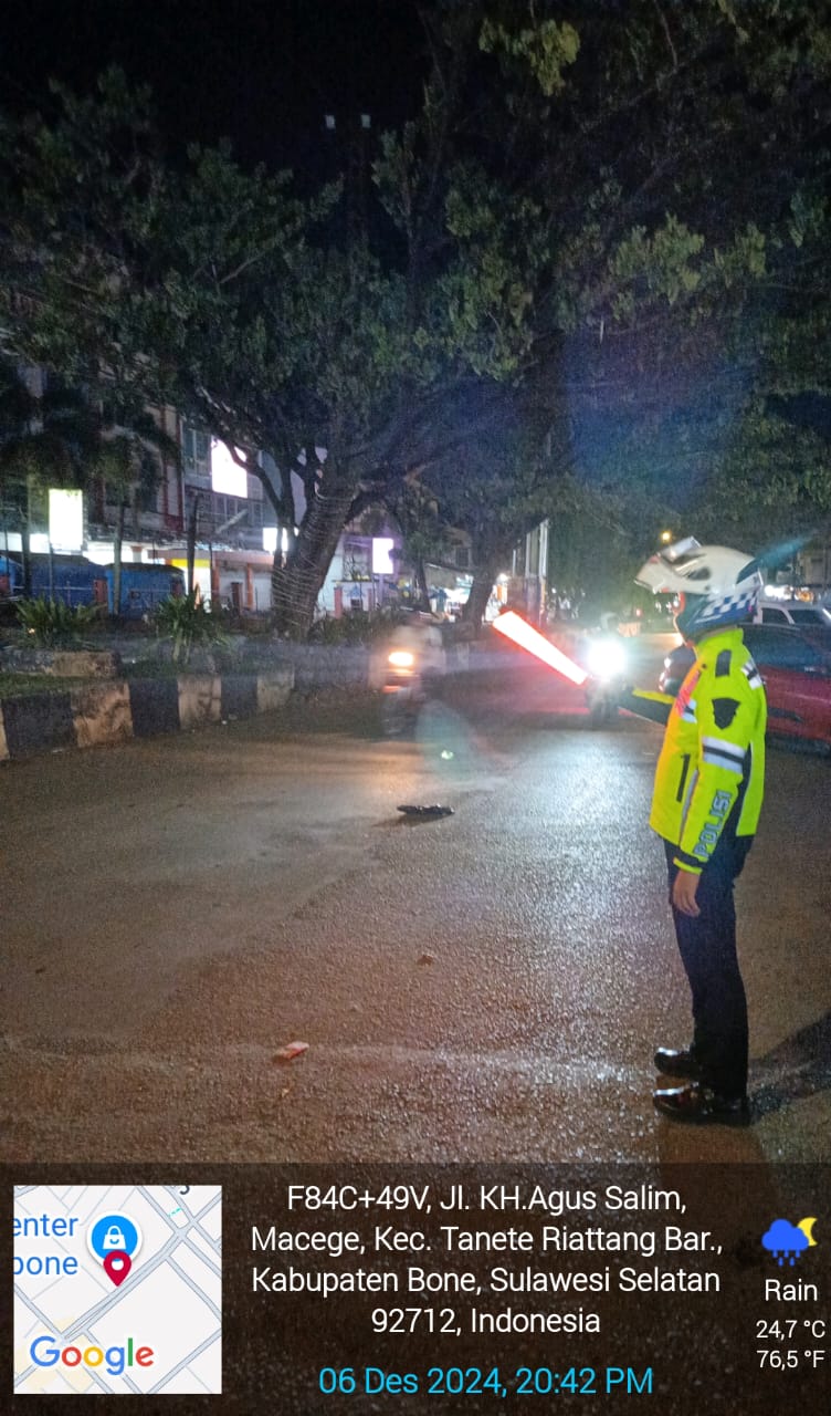 BONE, LinusTerkini.com- Guna menciptakan keamanan keselamatan ketertiban kelancaran lalu lintas pada malam hari, Personel Satlantas Polres Bone hadir di jalan melaksanakan Blue Light Patrol, Jumat malam (6/12/2024).