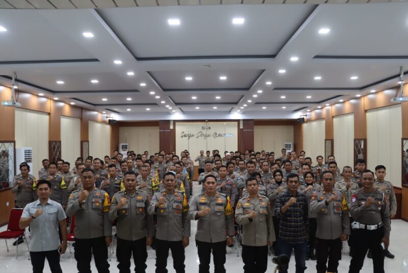 Kegiatan monitoring dan evaluasi yang dilaksanakan di Aula Sarja Arya Racana Mapolres Bone dihadiri oleh Pejabat Utama Polres Bone, Para Kabag, Kasat, Kasi, Perwira, Bhabinkamtibmas dan Polisi penggerak.