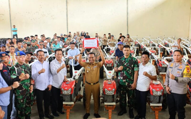 BONE, LinusTerkini.com- Bupati Bone Andi Asman Sulaiman bersama Kapolres Bone AKBP Erwin Syah, SIK.,MH menyerahkan Alsintan berupa traktor roda 2 kepada Brigade Pangan dalam rangka mendukung program Ketahanan Pangan.