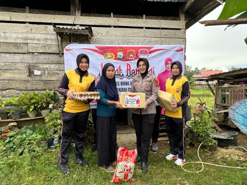 Kapolres Bone AKBP Erwin Syah, SIK.,MH melalui Kabag SDM Kompol Arsyad,SIP mengatakan bahwa, Pada kegiatan Bakti sosial ini, Polwan Polres Bone memberikan bantuan sembako kepada Ariyanti (37) dan Muliati (62) warga Linkungan Attang Pasareng Kel. Watang Palakka.
