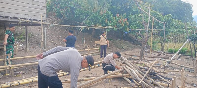 Kapolsek Tellu Limpoe IPTU Muh Syafri bersama anggota dan jajaran Tripika Kecamatan Tellu Limpoe mendatangi lokasi yang diduga digunakan sebagai arena judi sabung ayam berhasil dibongkar dan dimusnahkan.