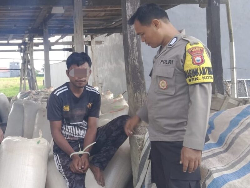 BONE,LinusTerkini.com- Polsek Tanete Riattang mengamankan seorang pria berinisial AR (34) yang diduga melakukan tindak pidana pencurian tujuh karung gabah milik warga.