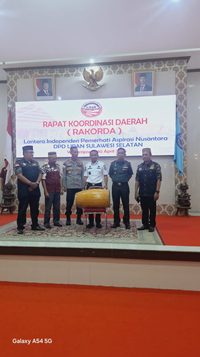 Sebelum meninggalkan ruang aula rumah jabatan bupati bone beliau diminta untuk membuka kegiatan Rapat Koordinasi Daerah Lipan sulawesi selatan dan sebelum beliau membuka secara resmi beliau mengajak bapak kapolres dan Bapak Dandim bone untuk naik ke atas panggung yang didampingi oleh ketua Umum, Ketua DPP, Ketua DPD dan Ketua DPK saat, bapak bupati Bone H. andi Asman Sulaiman S.Sos. MM. menabur gendang sebagai tanda dibukanya kegiatan Rapat Koordinasi Daerah Lipan se sulawesi selatan.