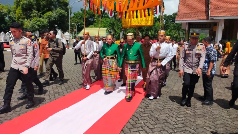 Dari hasil pantauan saat tiba di Rumah Jabatan Bupati Bone, Kedua pejabat Negara itu disambut secara adat seperti prosesi teddung pulaweng, pengalungan sarung khas Bone dan Tarian Pa’duppa.