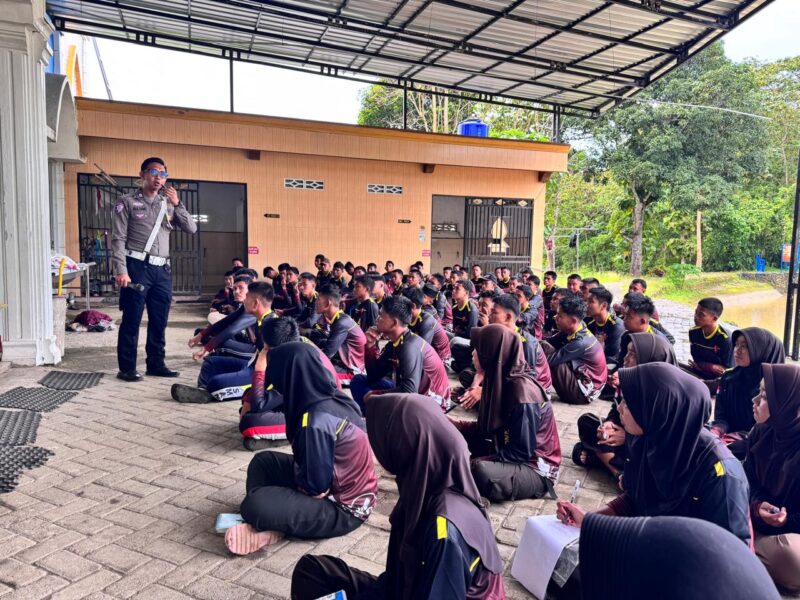 BONE, LinusTerkini.com- Personel Satlantas Polres Bone memberikan penyuluhan atau materi pendidikan Lalu Lintas kepada anggota Saka Bhayangkara Angkatan X Polres Cabang Bone tahun 2025.