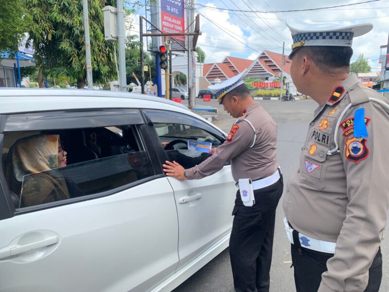 Selain membagikan brosur, petugas juga memberikan penjelasan secara persuasif mengenai sasaran Operasi Patuh Pallawa 2025 dengan pendekatan humanis.