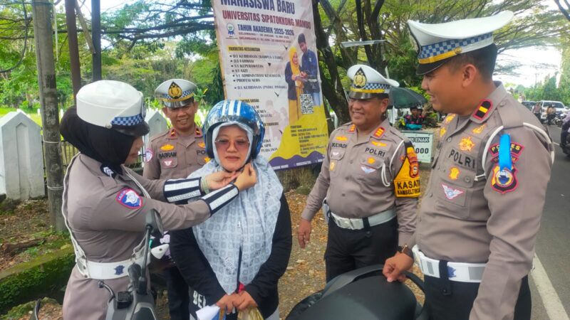 BONE, LinusTerkini.com- Satlantas Polres Bone dipimpin Kasat Lantas AKP H Musmulyadi S.PDi membagikan helm berstandar SNI bagi pengendara roda dua yang taat berlalulintas, Jumat pagi (25/7/2025).