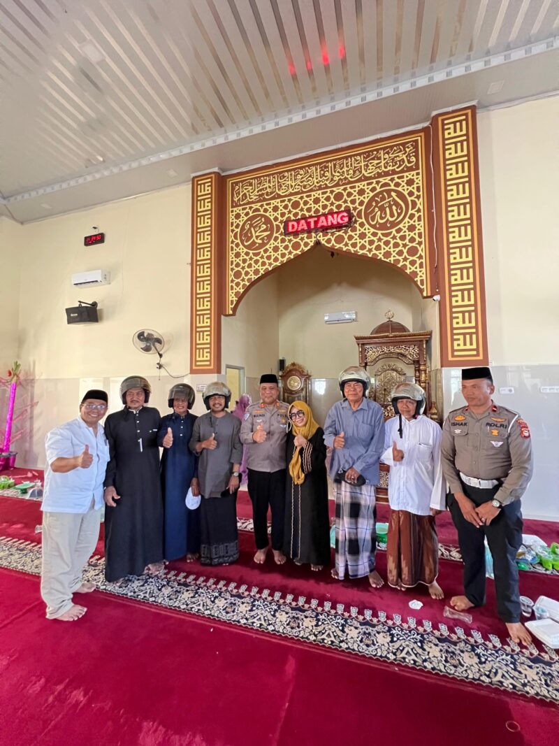 Dalam peringatan ini, tidak hanya meneladani akhlak Rasulullah SAW, tetapi juga membagikan bantuan Helm kepada pengurus Masjid.