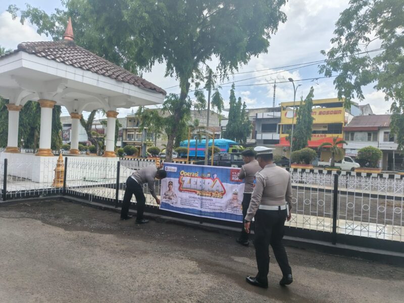 LinusTerkini.com- Satlantas Polres Bone melaksanakan pemasangan spanduk Operasi Zebra Pallawa 2025 di beberapa titik, seperti Jalan MH. Thamrin – Jalan Ahmad Yani Kec. Tanete Riattang Kab. Bone, Kamis (27/11/2025).