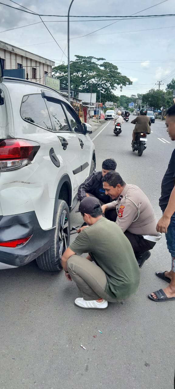 Polisi Humanis Satlantas Polres Bone Bantu Warga yang Alami Ban Bocor