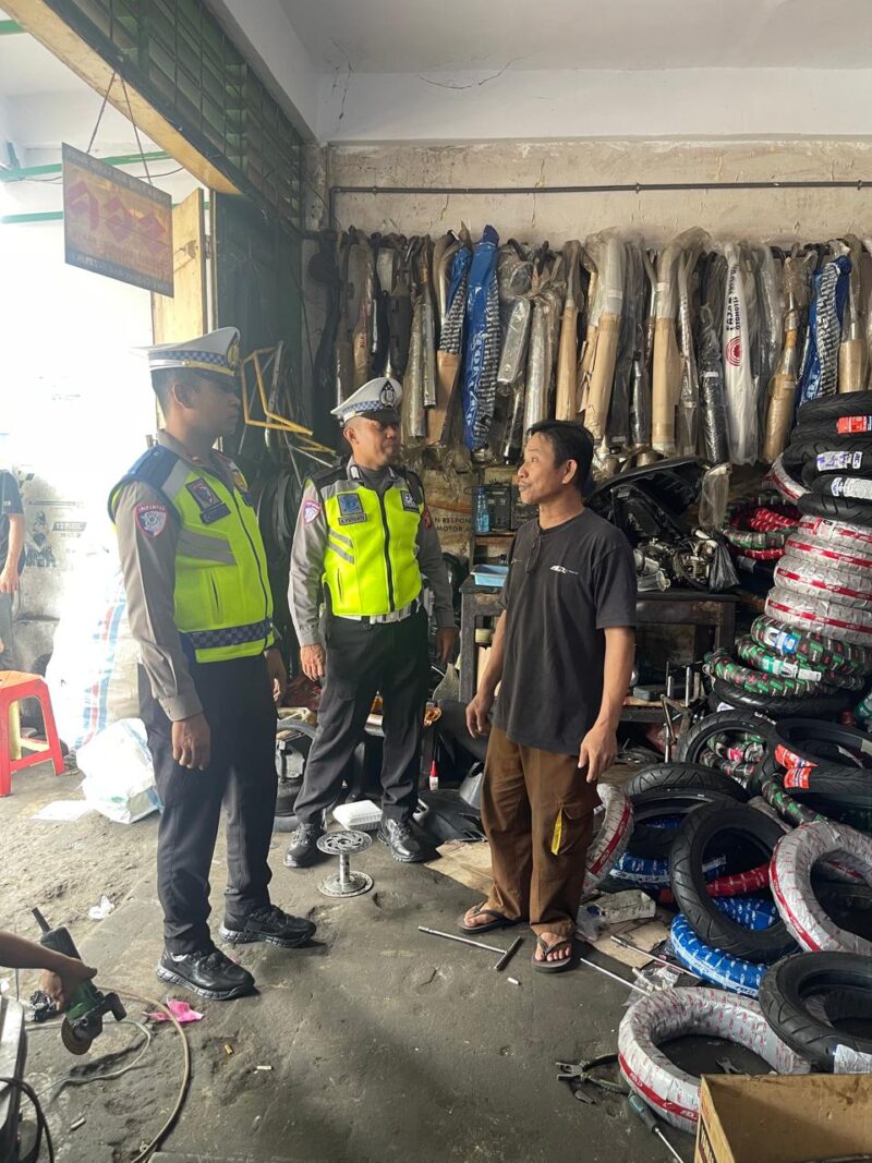 BONE, LinusTerkini.com- Satlantas Polres Bone terus berupaya menjaga Kamseltibcarlantas agar tetap aman dan kondusif, salah satunya dengan mendatangi bengkel motor, Toko Damai Motor di Jl Sukawati Kabupaten Bone, Rabu (14/1/2026).