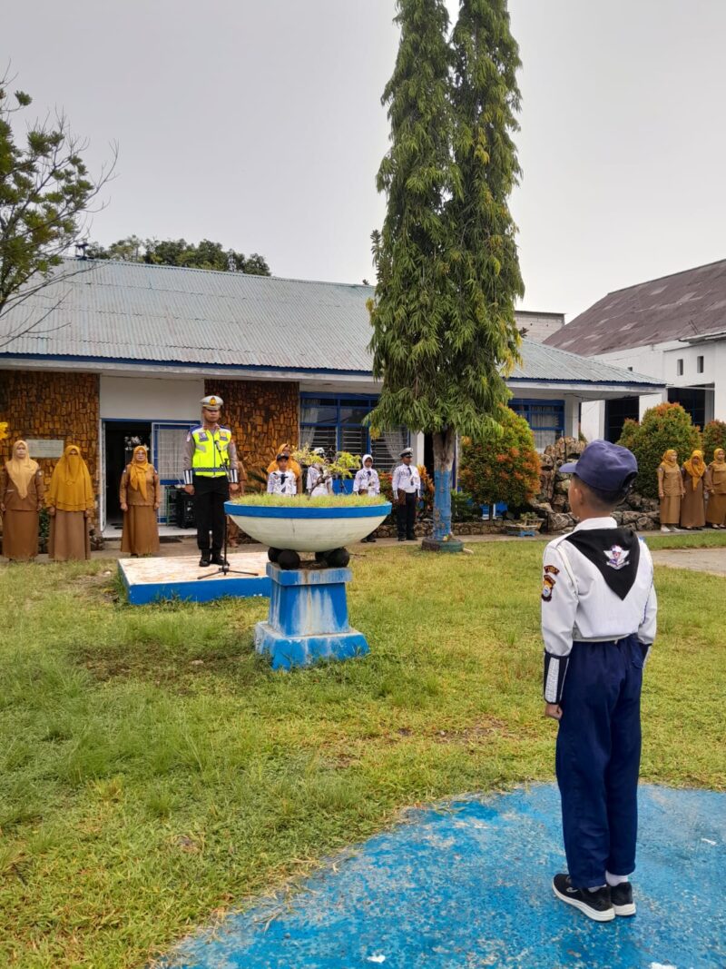 Di hadapan ratusan peserta didik, IPDA Chandra menyampaikan sosialisasi terkait pentingnya keselamatan dan ketertiban dalam berlalu lintas.