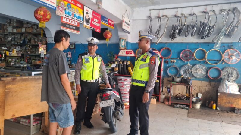 Unit Kamsel Satlantas Polres Bone memberikan imbauan dan sosialisasi kepada pemilik bengkel Toko Sentral Jaya Jalan Sukawati.