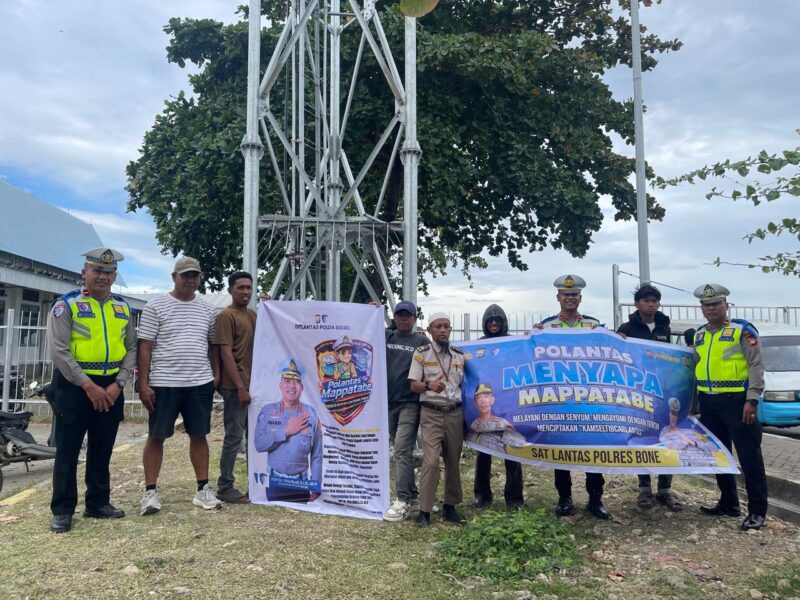 BONE, LinusTerkini.com- Satlantas Polres Bone melaksanakan kegiatan Polantas Menyapa “Mappatabe” kepada para pengemudi angkutan umum dalam kota sebagai upaya membangun komunikasi yang humanis dan persuasif.