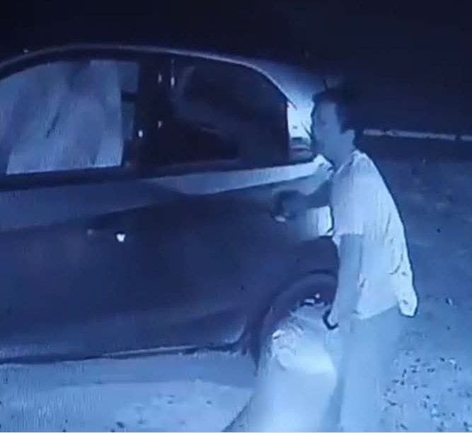 Dalam rekaman tersebut, pelaku terlihat menggunakan sebuah mobil Honda Brio saat mengambil hasil panen milik warga.