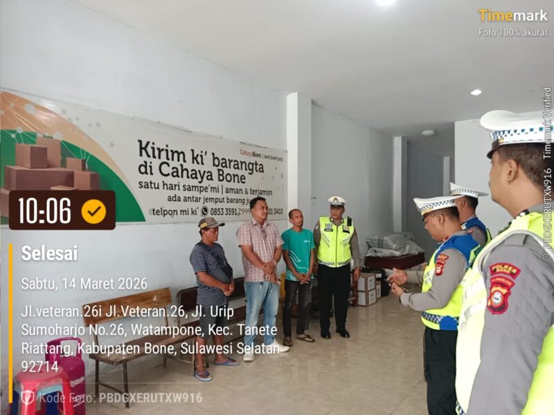BONE, LinusTerkini.com- Dalam rangka meningkatkan keselamatan berlalu lintas, Satlantas Polres Bone melaksanakan kegiatan sosialisasi Kamseltibcarlantas kepada para pengemudi dan pelaku usaha travel Mobil Cahaya Boned di Jalan Veteran, Kabupaten Bone, Sabtu (14/3/2026).