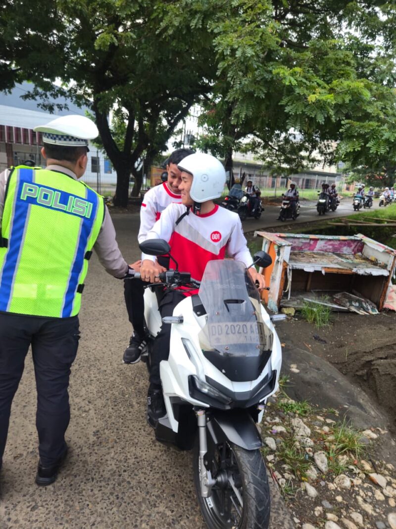 Sehingga pengendara yang tidak memakai helm yang bersangkutan kami minta untuk segera mengambil helm dan memasangnya dengan benar.